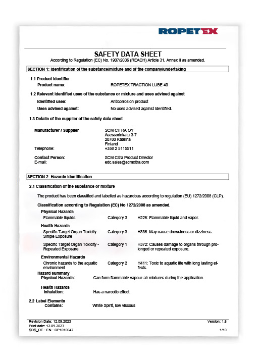 - ROPETEX Traction Lube 40 safety data sheet GB (English)